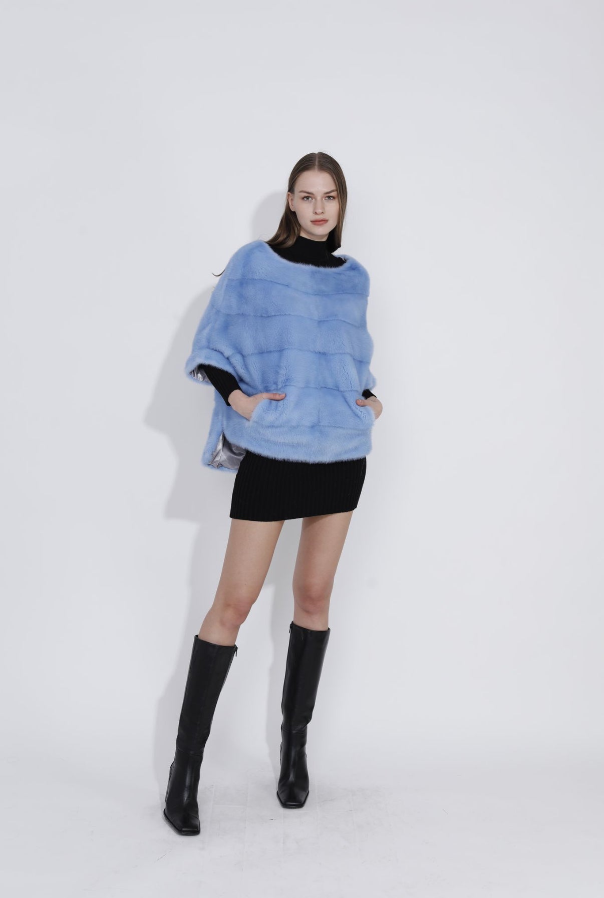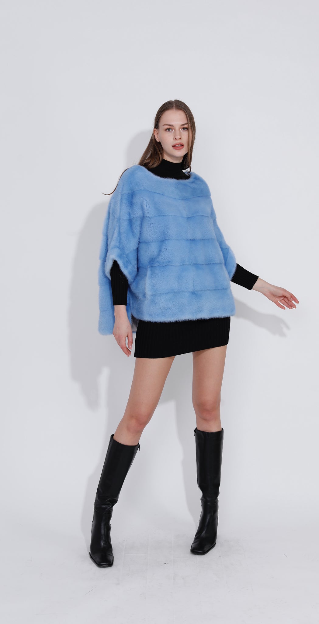 Wrap yourself in understated luxury with this elegant mink poncho. Crafted from exceptionally soft, premium mink, it drapes effortlessly over the shoulders to create a fluid, flattering silhouette. The natural sheen and rich texture of the fur add depth and sophistication, while the poncho design allows for comfortable movement and versatile styling. Perfect for elevating evening wear or adding a refined finish to daytime looks, this mink poncho offers timeless warmth, comfort, and unmistakable elegance.