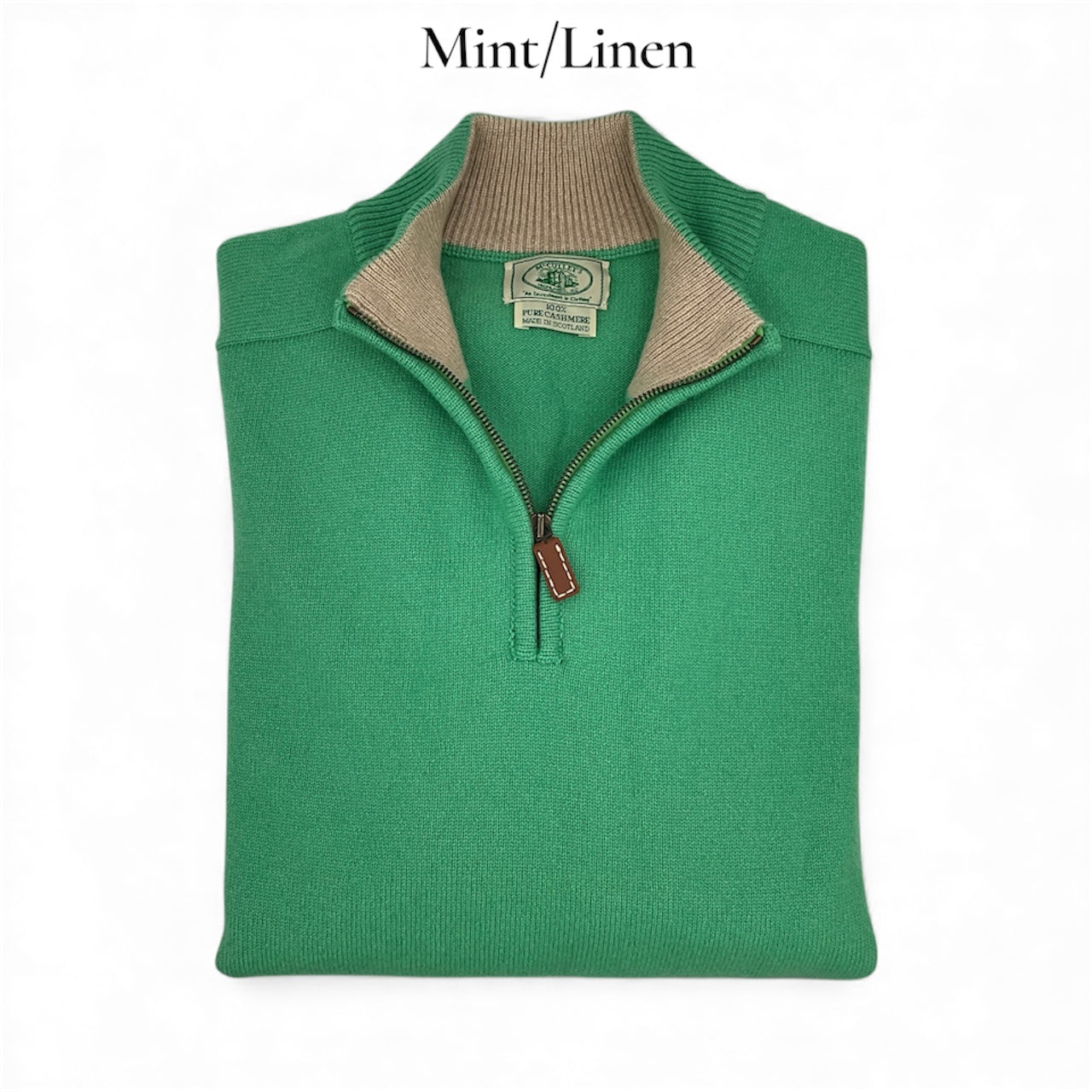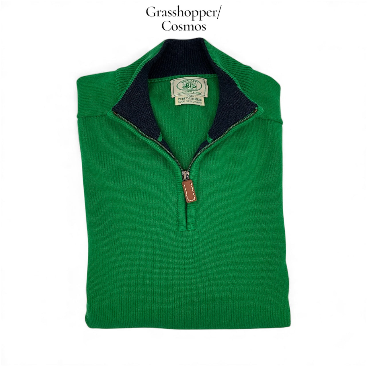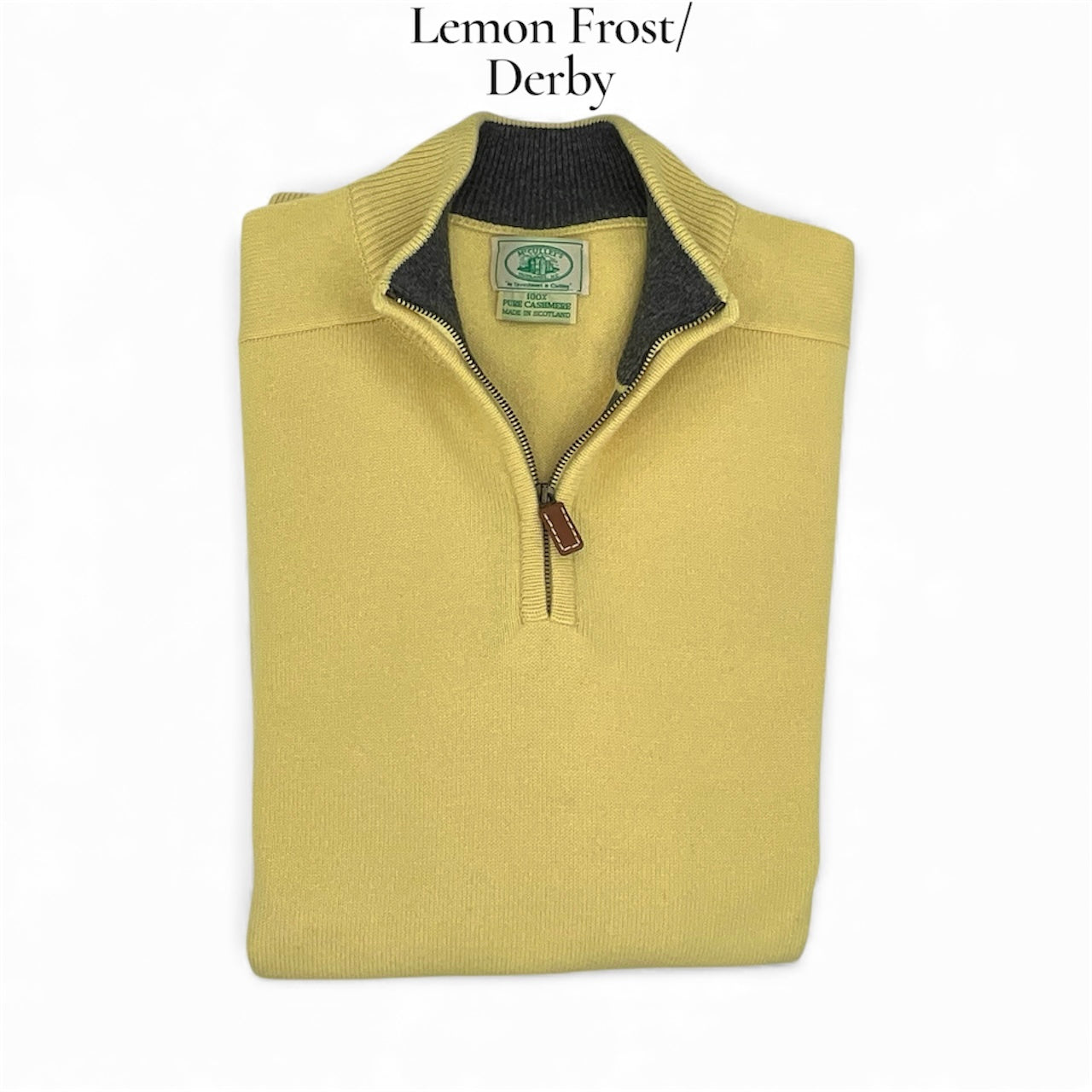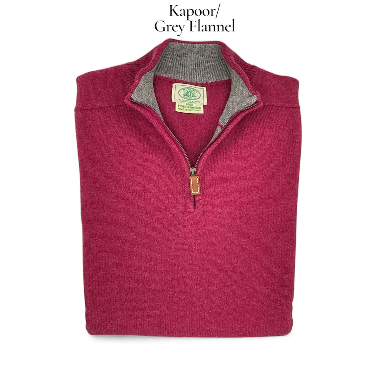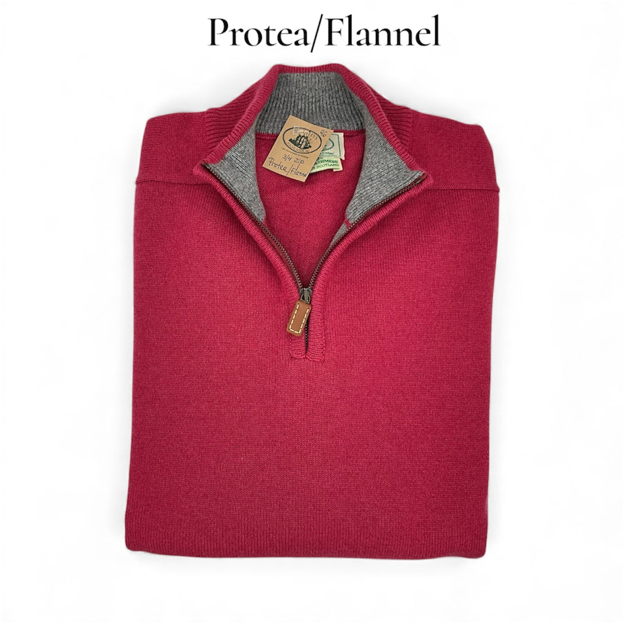Our exclusive 3-ply Scottish Cashmere 3/4 zip knit sweater is perfect over a sport shirt or layered under a jacket for cooler days ahead! Sporty contrasting collar and placket. Don't see your favorite color or size? Please call the shop and we can order it for you, or we may have it already in stock! Custom orders take 3-4 months. Dominant color listed first, contrasting color is second.