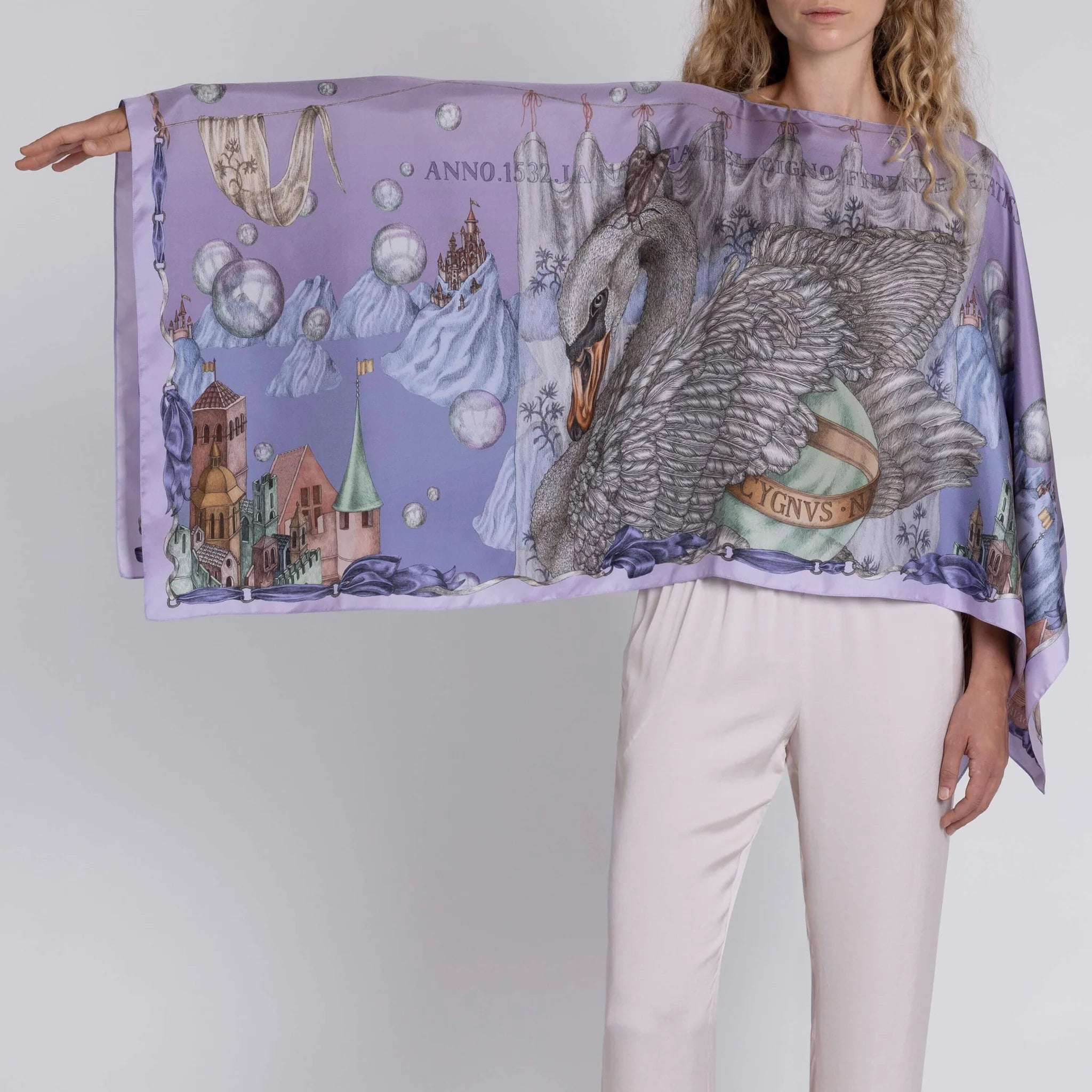 The Silk Slipover is made in London from luxurious silk twill, displaying the exquisitely detailed placement print which has been carefully positioned to show beautiful detailing from every angle. One size fits all in this elegant, draped garment, the asymmetric design creating a cascade of silk for showstopping effect, finished with French seams and a delicate pin hem.
