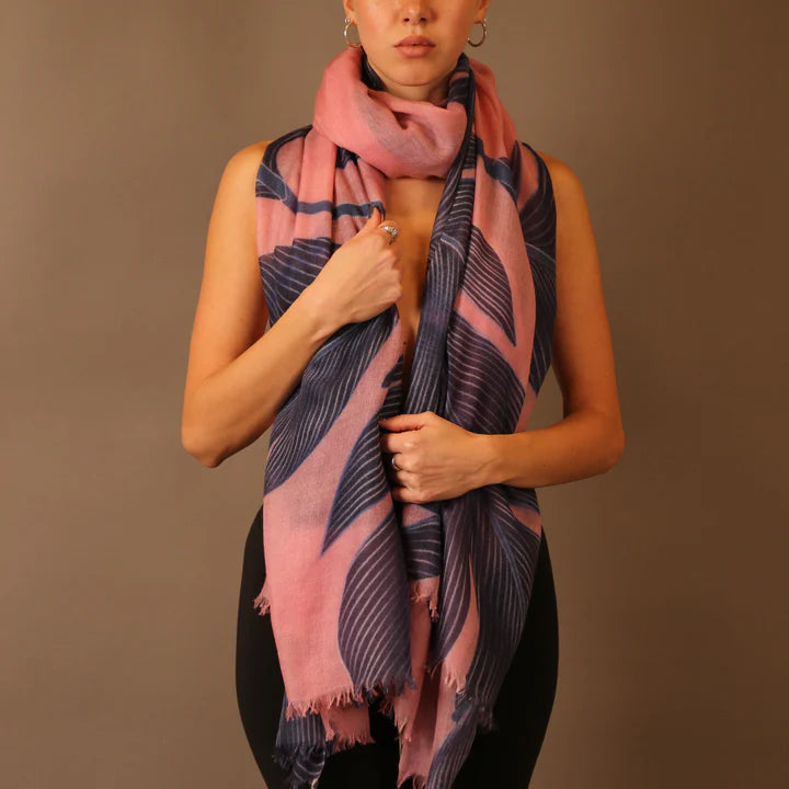 Our printed PALMA scarf is made from 100% pure cashmere—feather-light, ultra-soft, and luxuriously refined. The exclusive palm-leaf print on an extra-fine weave makes it a timeless classic and a true wardrobe favorite. With its generous size, it can be worn as a scarf, stole, or poncho.
