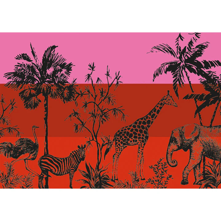 Made from the finest cashmere, this hand-felted scarf features a striking safari scene with wild animals printed across three complementary colors, creating a timeless design. A luxurious touch for any outfit.