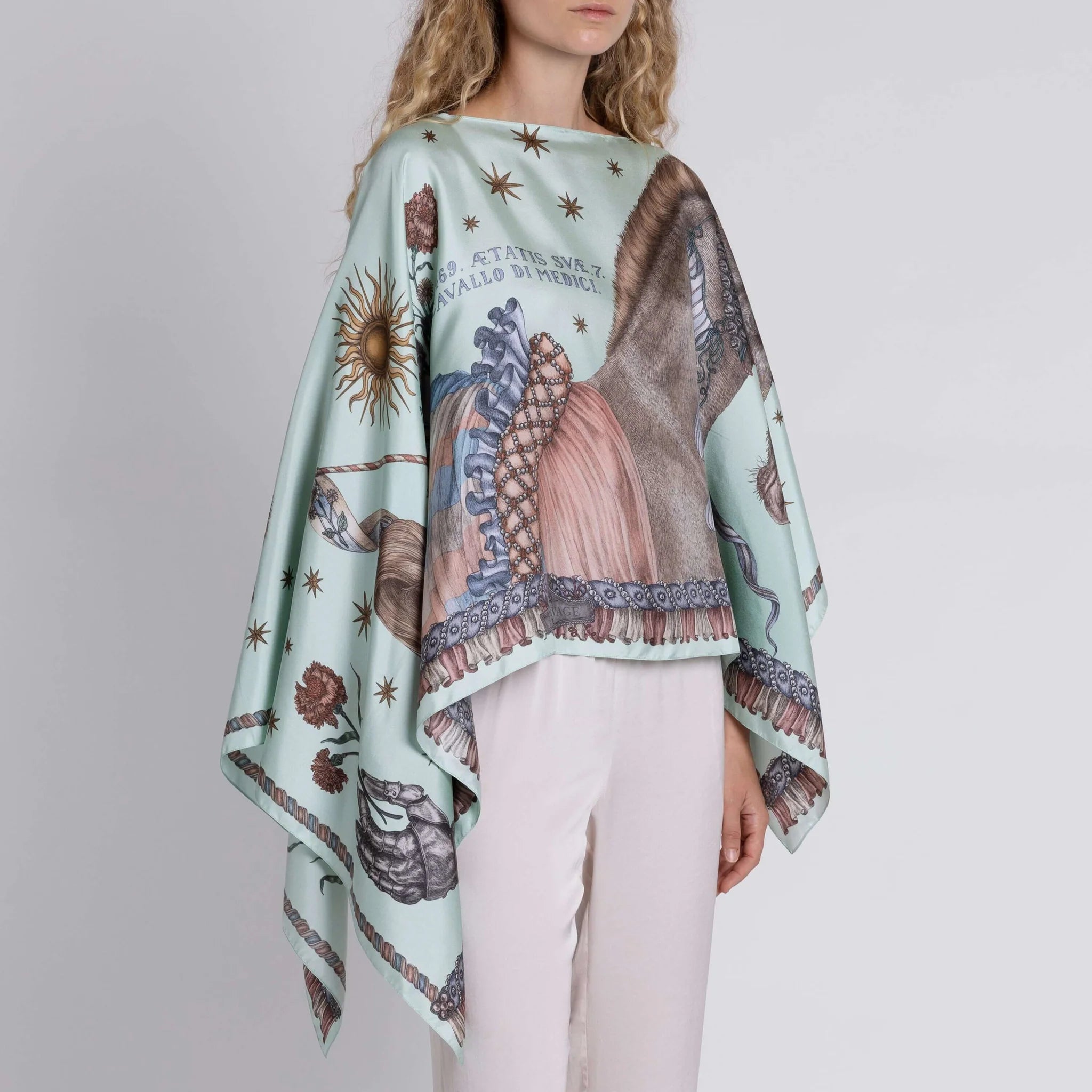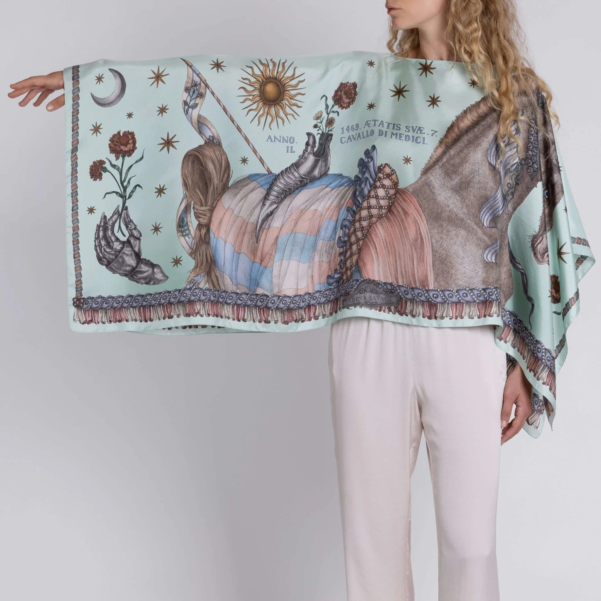 The Silk Slipover is made in London from luxurious silk twill, displaying the exquisitely detailed placement print which has been carefully positioned to show beautiful detailing from every angle. One size fits all in this elegant, draped garment, the asymmetric design creating a cascade of silk for showstopping effect, finished with French seams and a delicate pin hem.